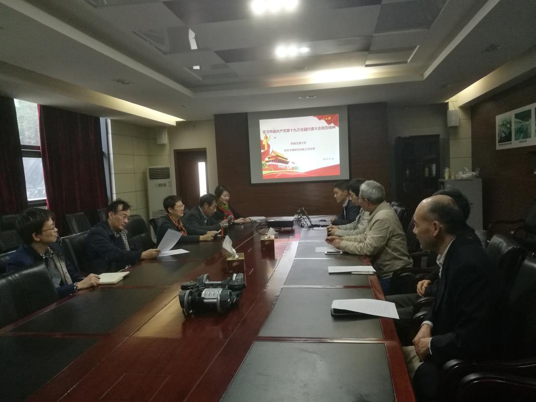 本次会议第一个阶段主要内容为学习十九大精神以及新版《中国共产党章程》修订主要内容的传达,第二个阶段为自由讨论阶段,主要围绕学习十九大心得以及对“交通强国”的认识两个方面的讨论。在敬霖老师的精心准备下,大家对于十九大的重要精神进行了认真学习,对于新修订的党章进行了仔细阅读。在自由讨论阶段,罗世辉老师谈到:学习完此次十九大报告后有几点感受,第一点是此次报告与过去的不同,感受到既站得高,又很接地气,作为普通百姓,能够将报告的每一字都能看懂,感受到了报告中传达出来的亲切与平实。第二点事我国幅员辽阔,涉及到方方面面,我党要把国家管理好非常困难。我们看到了过去五年中国家的巨大变化,许多之前较为困难的事情都办成了,办到了,办好了。我们看到反腐倡廉带来的巨大成就,看到了科技创新的日新月异。第三点作为党员和科技人员,如何能够结合十九大制定的诸如“交通强国”等战略目标作出自己的一些贡献,为“两个一百年”的实现增光添彩。黄世辉等几位老师说到:最近几年,老百姓对环境的要求越来越高,我们看到周围的湿地公园的增加,绿化的增加,空气污染的治理在不断加强,但环境的污染也日益严重,看到党章中专门就生态环境中加入了“绿水青山就是金山银山”这一条,感觉到到我党已经意识到这个问题,期待未来的环境会变得越来越好。还有几位老师说:全面从严治党是所有目标实现的基础,我们从精准扶贫、一带一路等政策看到我们党不仅是有目标更有措施。前进的道路是曲折而重要的,坚持党的领导是所有问题的关键核心所在,作为一名党员,我们对国家的发展充满了自豪感,更应该思考的是如何能够发挥党员的模范带头作用,为中华民族实现伟大复兴梦贡献自己的一份力量。