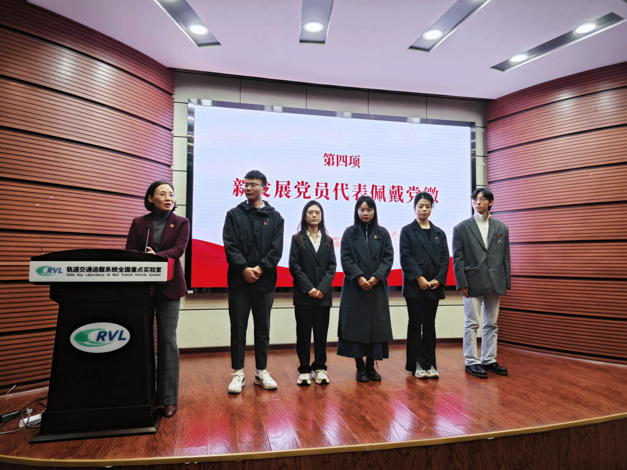 研究生党员代表讲党课,并参加列车与线路研究所2024级硕士研究生党支部“领航先锋‘旗帜小组’”学习实践活动。活动由实验室党委副书记王霞主持,学生党支部委员代表、2024年第一期新发展党员及列线所2024级硕士党支部全体党员参加。