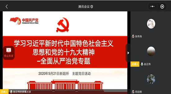 5月21日上午10点,新型轨道交通技术研究所师生共建党支部举行主题党日活动,党支部33名党员参加会议,本次会议由党支部副书记赵正伟同志主持,以线上视频的方式进行学习。本次会议从全面从严治党的要求、新时代全面从严治党的新部署以及十九大后全面从严治党的进展等方面进行学习。