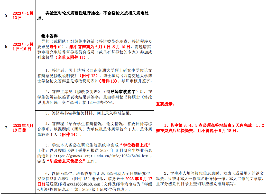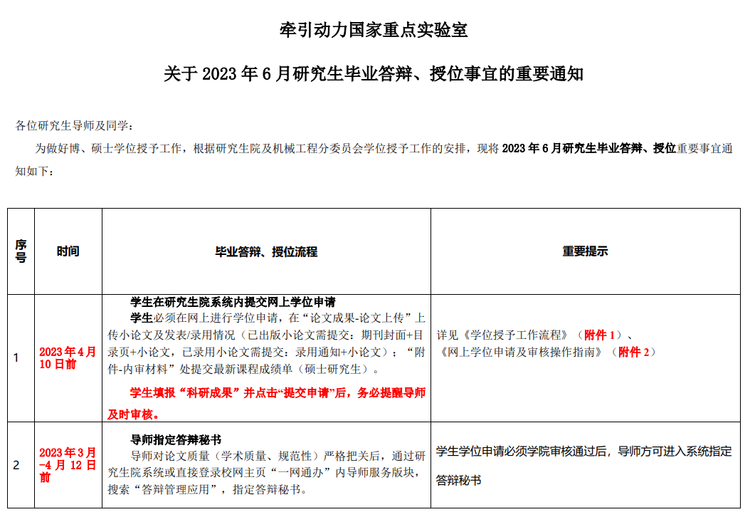 牵引动力国家重点实验室关于2023年6月研究生毕业答辩、授位事宜的重要通知