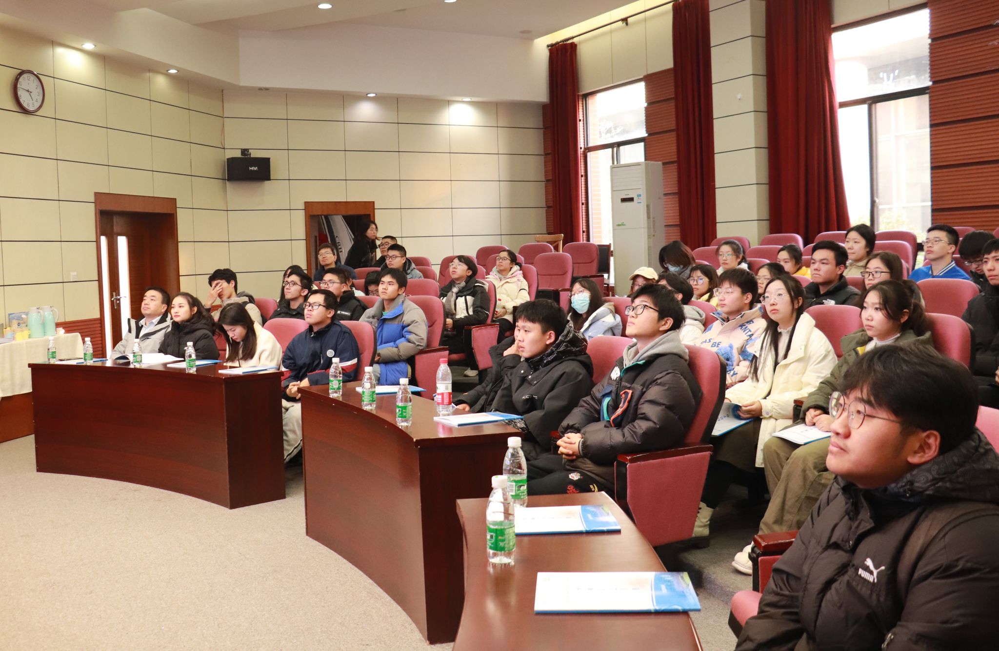 2023年12月21日,数学学院拔尖班一年级至三年级50余名本科生在数学学院副书记黄祥带领下,来实验室进行访学。实验室副主任杨冰向同学们进行了专题宣讲,介绍了爱爱啦概况 和研究生培养情况,赠送了《导师手册》,并欢迎同学们今后踊跃报考实验室。