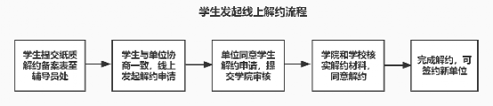 学生微信端操作流程:“国家大学生就业服务平台”微信公众号——毕业去向填报——签约记录查看详情——申请解约——上传解约函