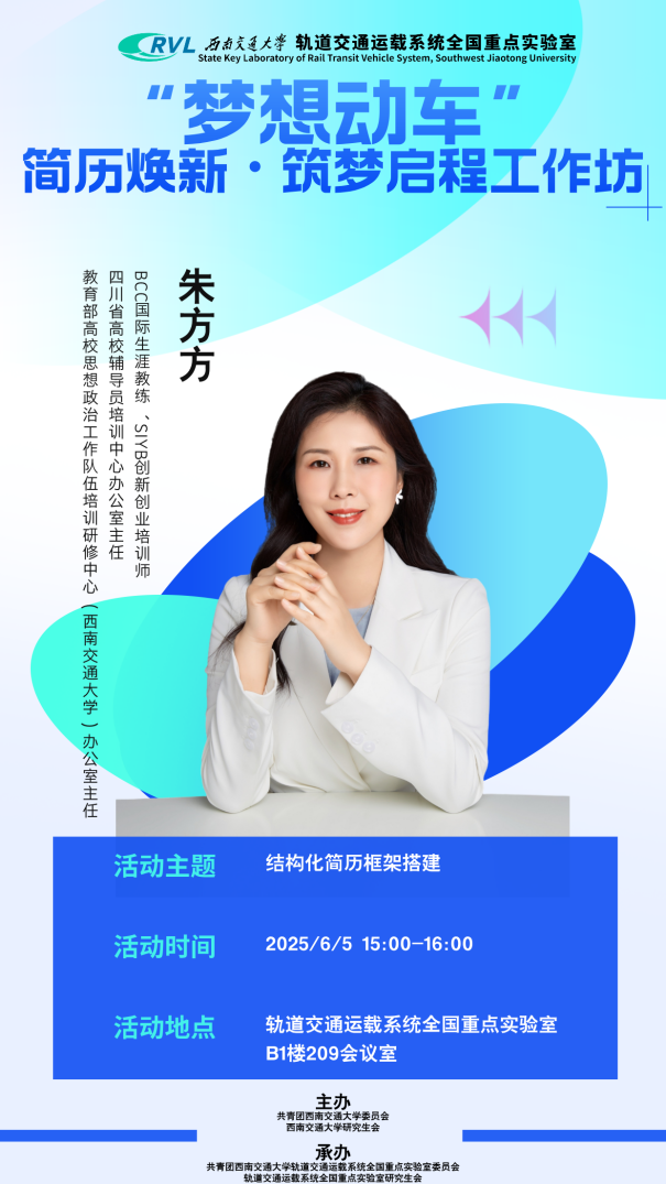 现举办“梦想动车”—简历焕新·筑梦启程工作坊活动,为同学们提供全方位的简历指导与修改建议。现将具体事宜通知如下: