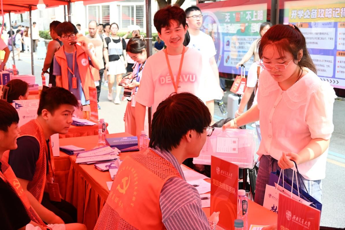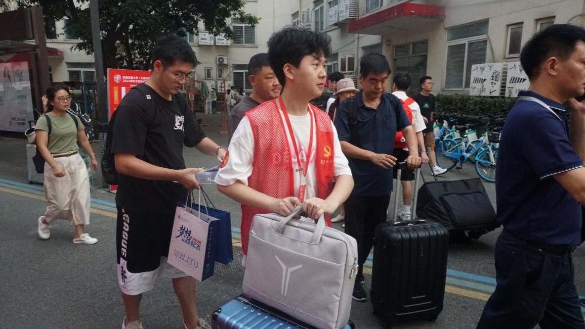 在迎新现场,还有一抹红格外引人注意,那是身着红色小马甲的实验室迎新党员服务先锋队。10余名学生党员组成的服务先锋队,切实发挥先锋模范作用,不畏骄阳、不惧困难,饱含热情地为新生办理报到手续、搬运大件行李、指引校园道路,并悉心地介绍学校科研特色与基础设施,展现实验室青年勇担责任、志愿奉献的青春风貌。