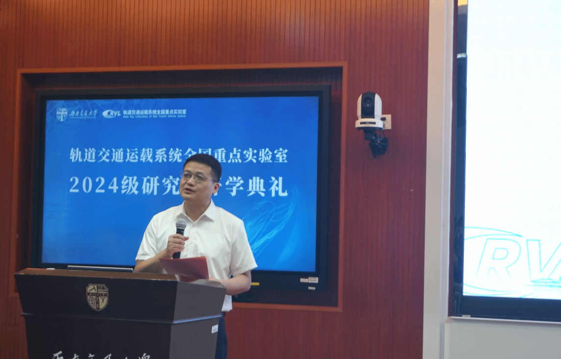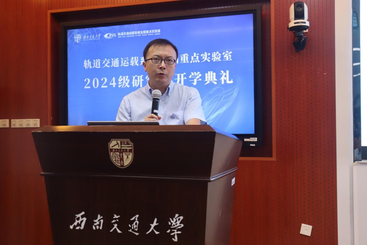 接着,实验室主任王开云介绍了实验室“应铁路而生、因铁路而兴、凭铁路而强”的数十年风雨历程,以时间为脉络梳理了实验室在学界、业界的影响和贡献。他希望2024级研究生能够秉承科学家精神,矢志不渝接续奋斗,继续为轨道交通行业的发展贡献力量。