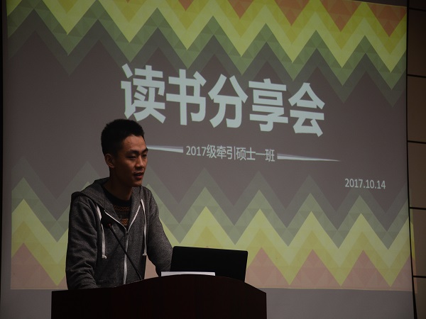 10月15日,牵引动力国家重点实验室2017级硕士一班全体同学欢聚一堂,在第一次班级合影之后,在牵引红楼218举办了一场极具意义的读书分享会。上午九点,班长曾厚铭登上讲台宣布读书分享会开始。曾厚铭表示,读书是我们增长知识开拓视野的一个非常重要的途径,而且多读书可以有效增长我们的写作水平,这对于我们研究生的论文写作来说是至关重要的,要多读书,读好书,并且要积极地将自己读到的好的作品,分享给周围的同学。随后曾厚铭率先向同学们分享了自己的读书心得,并且向同学们介绍了鲁迅先生的作品风格以及他的一些感悟。
