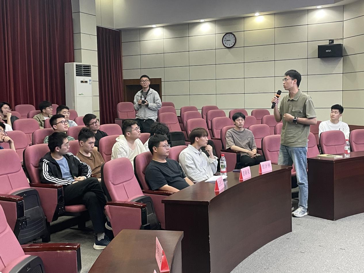 本次镜湖半月谈活动邀请到了实验室2025届毕业生辅导员陈宇豪老师及2025届的3位优秀硕士毕业生作为主讲人,为研究生们的求职之路、升学深造提供方法指导和经验分享。本次活动由轨道运载研会主席团成员陈丙硕主持,50余名研究生参与本次活动。