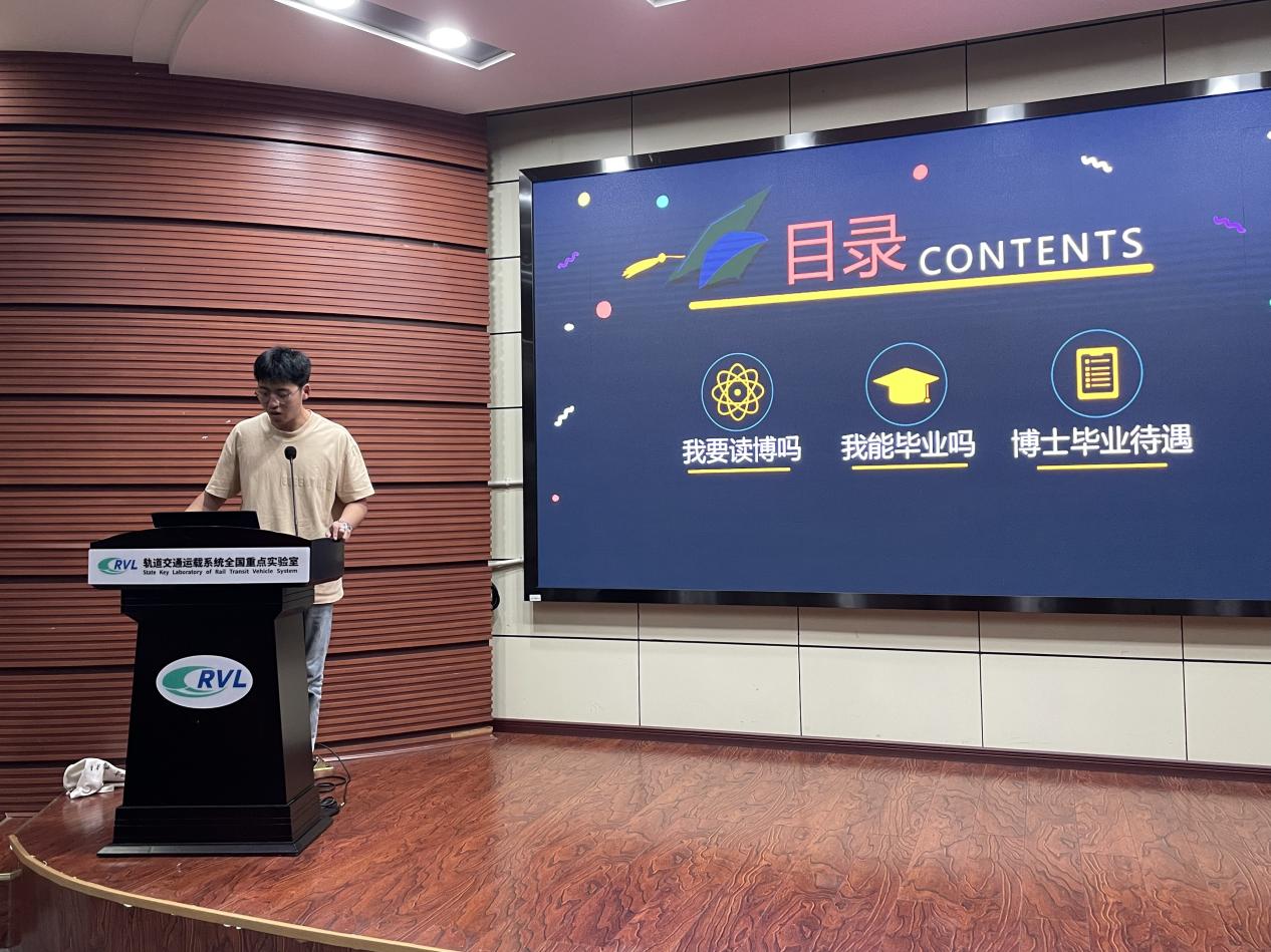读博深造。汪依宁通过调查问卷互动的方式,让在场同学分析自己是否适合申请博士。随后他介绍了博士求学的科研成果条件、薪资待遇等基本信息,让同学们更了解攻读博士的具体情况。最后,汪依宁也给同学们送出寄语,希望大家能找到适合自己的科研与生活节奏。
