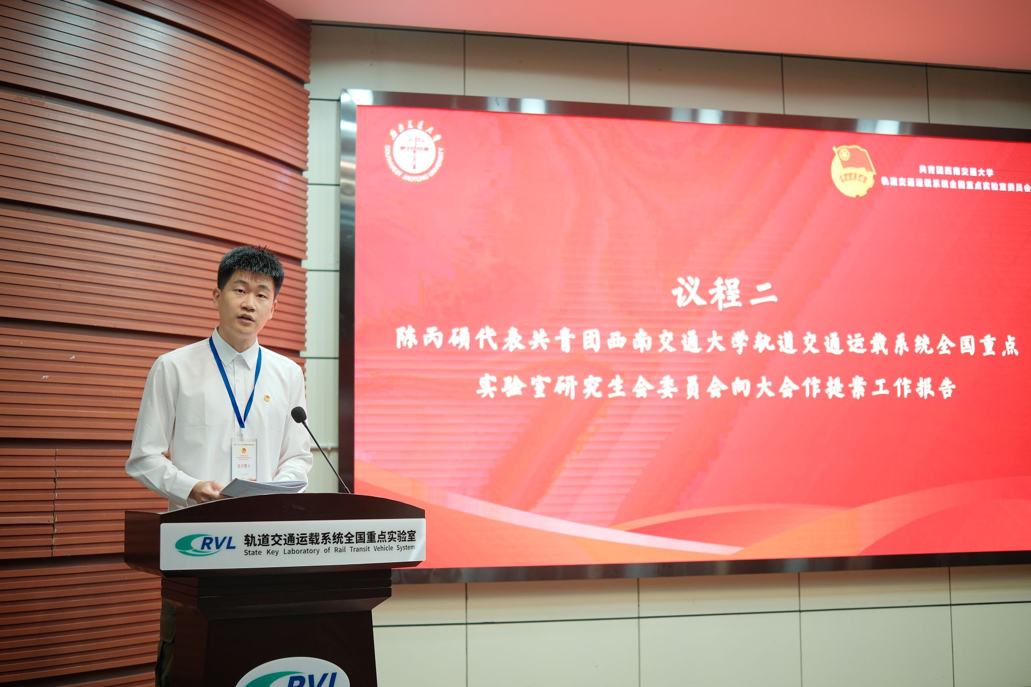 接下来,轨道运载研究生会主席团成员陈丙硕代表研究生会委员会介绍了本次大会提案工作的开展情况,他说:“轨道运载研究生会在提案工作中积极发挥桥梁纽带作用,认真听取同学们的问题与建议,推动提案工作常态化、制度化。”