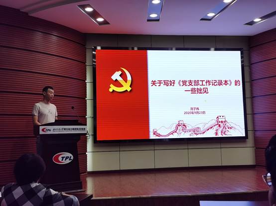 首先,硕士18-2党支部书记周子伟同学作为优秀党支部的党支书向大家分享关于写好《党支部工作记录本》的经验和建议。周同学建议该表要专人记录,笔迹统一且工整;各位党支书和支委要充分了解党支部的所有党员、预备党员、入党积极分子信息,完善工作记录本上本支部各项内容,注意及时更新;要按照《党支部工作记录本》的工作制度和党委要求,结合支部成员的特长和想法,集思广益,使组织生活更加多样化且规范化;记录要对会议或活动的时间、地点、内容、主持人、记录人、应到人员、实到人员和缺席人员以及缺席原因等如实填写,对会议或活动按照流程详细记录,要真实准确,不能随意删减和更改,重要内容不可遗漏;写完的工作手册要存档。最后周同学希望大家能够充分发挥党员先锋模范作用,认真对待所有工作,做行动上的巨人。