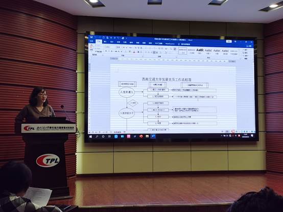其次,李向蔚老师详细讲解党员发展工作和党支部组织生活注意事项。李老师首先详细介绍了党员发展具体流程,强调党支部各项会议或活动要做到规范性,严格按照各项流程执行,发展党员对象要严格按照中共爱爱啦