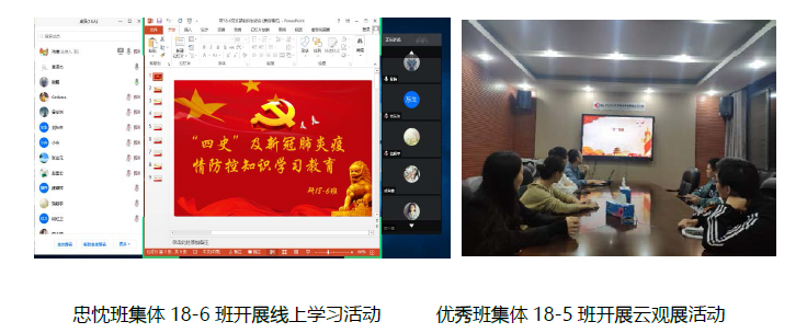 多措并举。实验室将学习“四史”和新冠疫情防控知识学习作为加强党支部建设长效机制的重要内容,并将其作为党支部“三会一课”、团支部“三会两制一课”等组织生活内容融入到党、团支部日常学习教育中,推动学习教育入脑、入心,明确学生党员、学生骨干带头学习,并深化落实到日常生活中。各个班级坚持集中学习与自主学习相结合,通过开展云观展、专题学习会、支部书记讲党课、观看红色电影等活动,以“线上+线下”的方式进一步推进学生党员增强“四个意识”、坚定“四个自信”、做到“两个维护”,提升广大学生知史爱国的思想意识,并将思想和行为在行动上将感悟与体会落实到本职工作中,增强守初心、担使命的思想自觉和行动自觉。