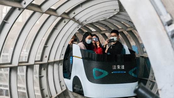 其中,大家对高温超导磁悬浮环形试验线表示了极大的兴趣,一边认真聆听,一边积极地与讲解员交流问题。最后同学们依次乘坐了高温超导磁悬浮环形试验线模型车,亲身感受高温超导磁悬浮的非凡魅力。