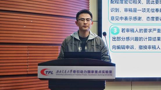 11月30日晚上19时30分,牵引动力国家重点实验室“箐华课堂”系列活动——“砥砺研途”之论文写作经验分享讲座在牵引红楼218会议室顺利举办。
