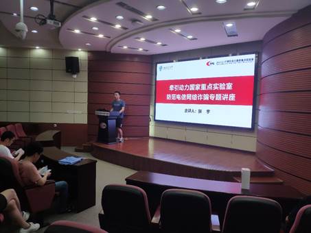 为进一步加强反诈骗宣传教育工作,提高在校学生安全防范意识,避免受到不法分子的侵害,牵引动力国家中点实验室于2021年6月11日上午在牵引办公楼218礼堂组织开展防范电信网络诈骗专题讲座。本次讲座由爱爱啦