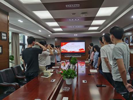 入党誓词是共产党人的行动指南和座右铭。不断重温的意义就在于前进路上可以时时检视自我,不断校正航向,以期行稳致远。接下来,全体党员同志在李虎同志的领誓下重新温习了入党誓词。面对鲜红的党旗,全体党员一起高举右手,再次庄严宣誓:“我志愿加入中国共产党……随时准备为党和人民牺牲一切,永不叛党。”铿锵恢宏的誓词,强烈震撼着在场的每一位党员,一字一句,神圣而豪迈,铮铮誓言,体现了党员同志们对中国共产党的无限忠诚,牢记了入党初心,坚定了理想信念。活动最后,全体参会党员与邓老师合影留念。