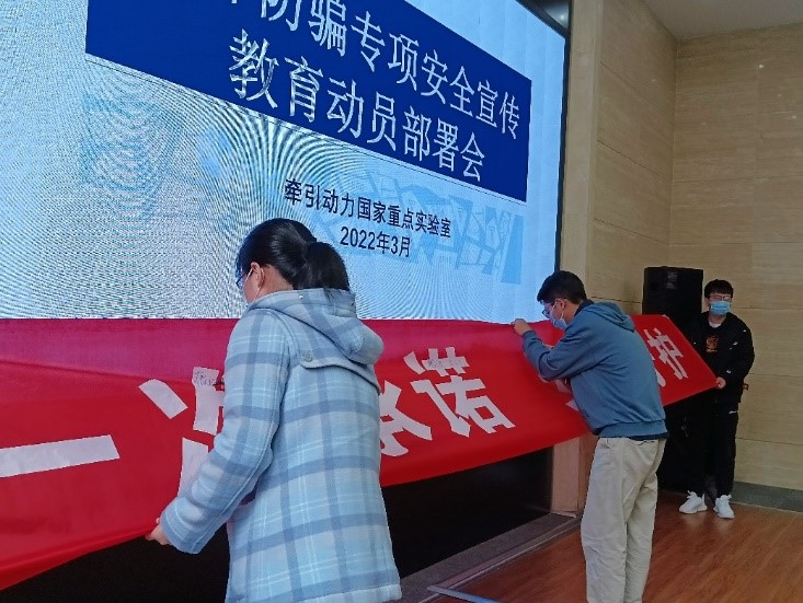 为进一步加强研究生安全稳定工作,增强研究生安全意识,切实提高同学们自我防范能力,确保校园平安、稳定、有序,远离风险,避免上当受骗。按照党委学生工作部的要求,3月25日,牵引动力国家重点实验室学生工作组于新大厅会议室顺利召开反诈骗专项安全宣传教育动员部署会议。实验室党委副书记李莹、各年级辅导员老师及生活委员参加了本次会议,会议全程有李莹老师主持。