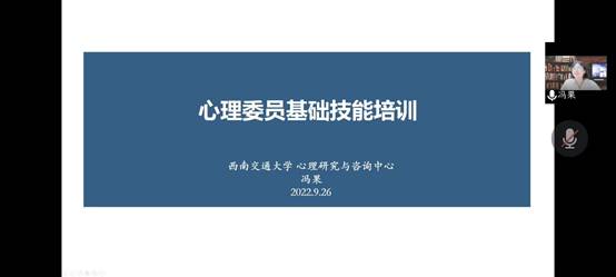 为增强心理委员对心理健康知识的了解,提升解决实际问题的能力和水平,牵引动力国家重点实验室召集各班心理委员于9月26日上午10:00进行了集中培训。因疫情影响,本次培训在线上进行,实验室邀请了心理研究与咨询中心的冯果老师为心理委员进行培训,本次活动由22级辅导员苏成容老师主持。