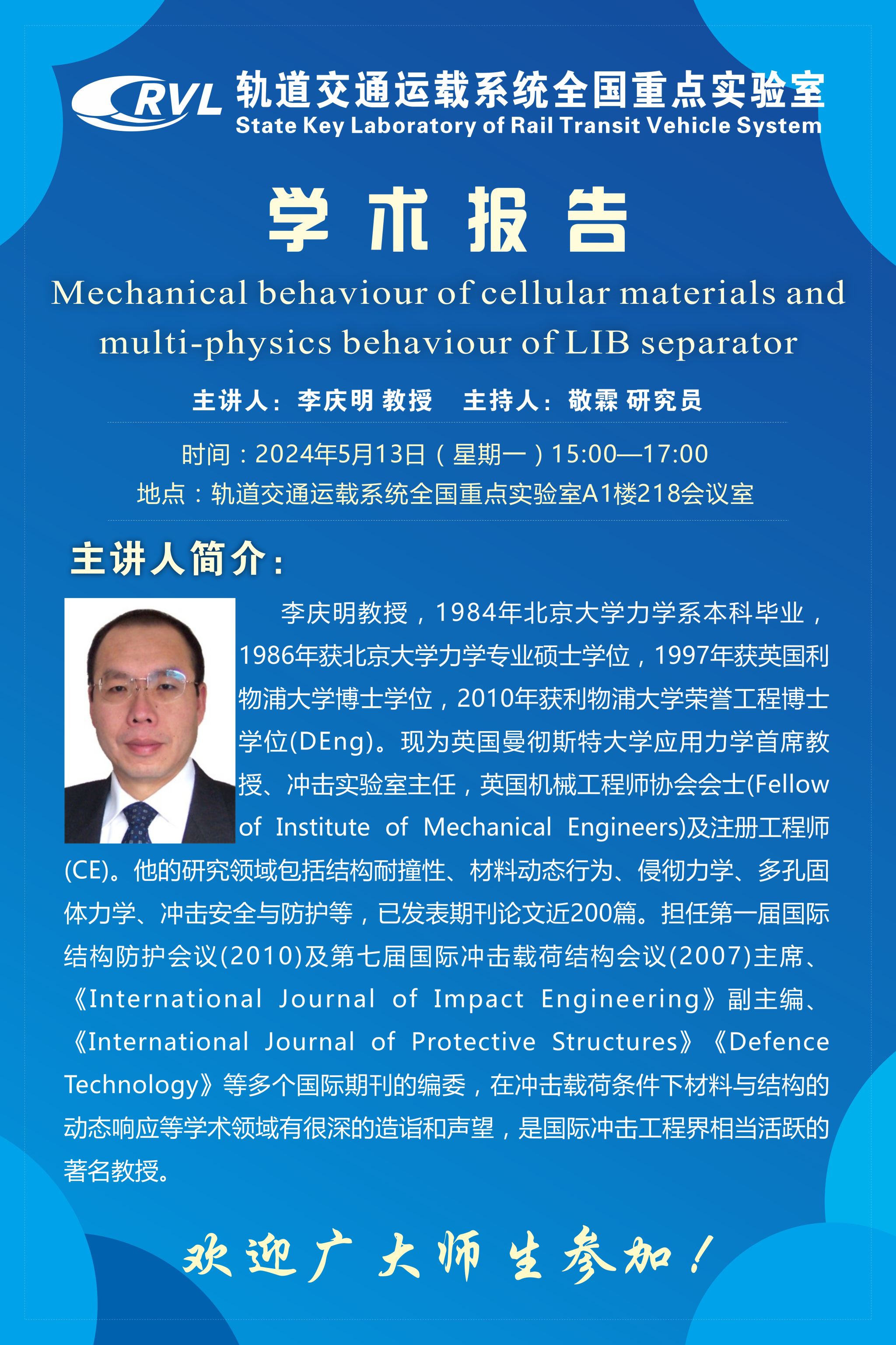 报告人:李庆明教授