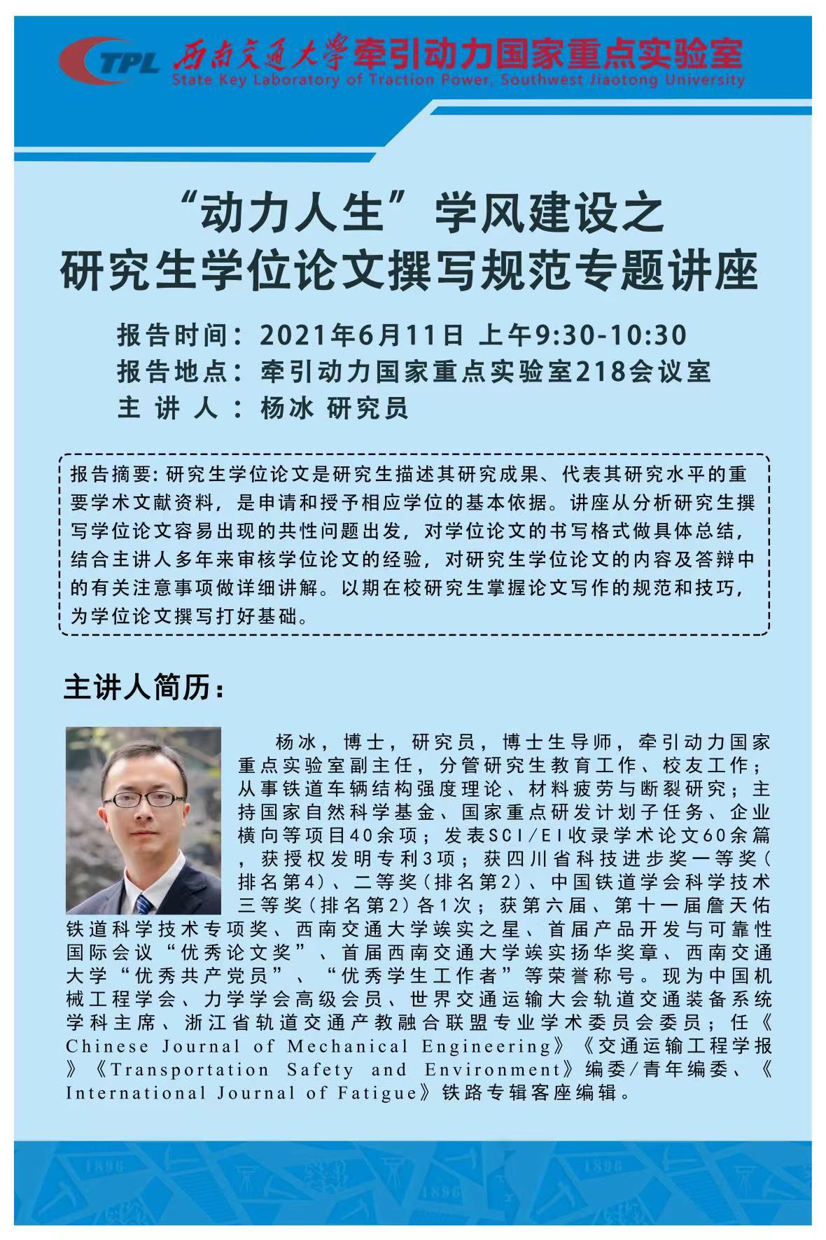 “动力人生”学风建设之研究生学位论文撰写规范专题讲座