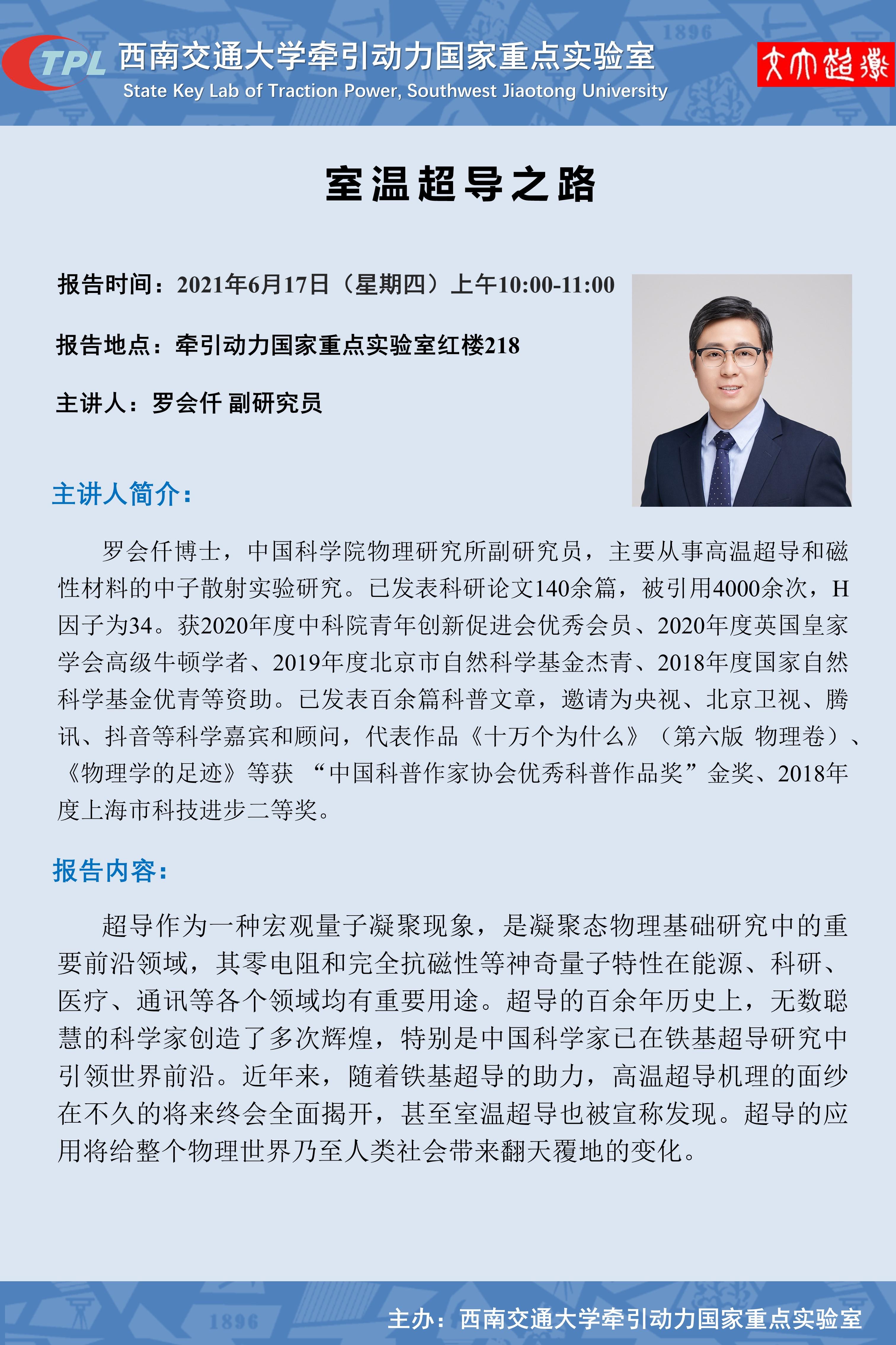 地点:牵引动力国家重点实验室红楼218