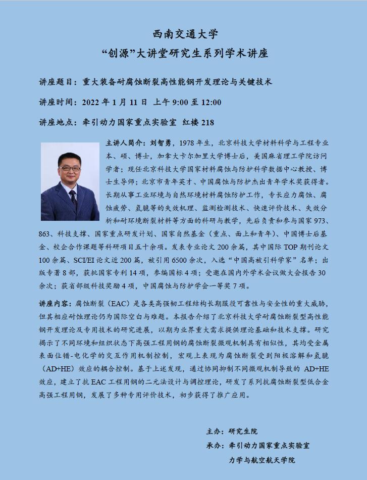 地点:牵引动力国家重点实验室红楼218
