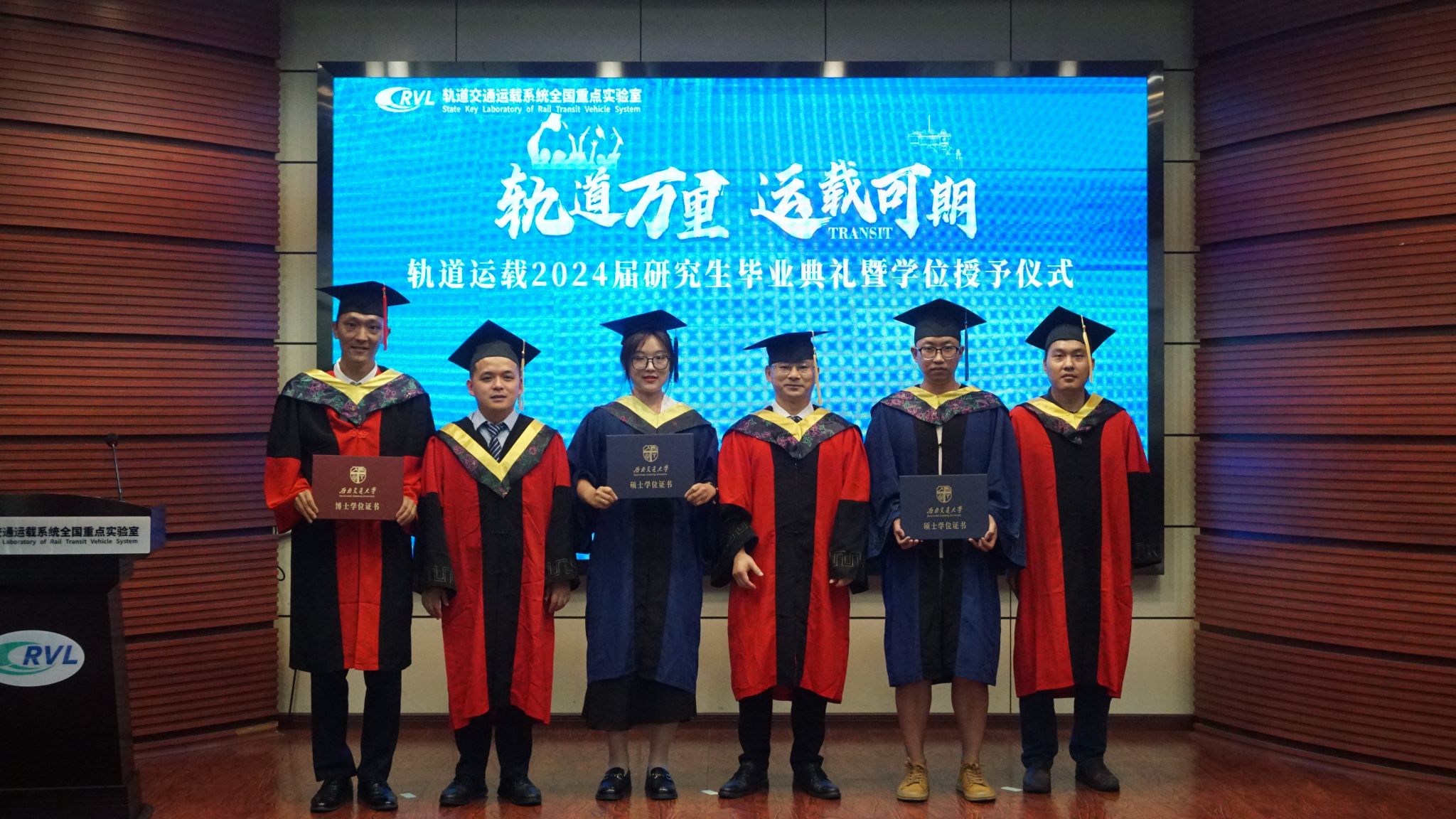 为进一步营造尊师重教的良好风尚,典礼还设立了毕业生代表向导师代表献花环节。5名优秀毕业生代表分别向机车车辆研究所所长刘建新、列车与线路研究所副所长赵春发、新型轨道交通技术研究所所长邓自刚、车辆工程与测控研究所王勇、轮轨关系与振动噪声研究所李伟等导师代表进行献花。