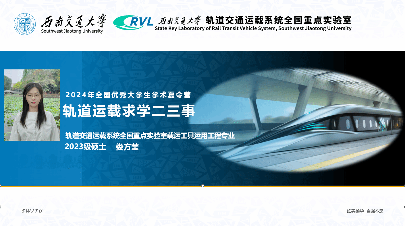 仪式伊始,翟婉明院士通过视频为营员们送上寄语。他指出实验室作为我国轨道交通领域第一个国家重点实验室,自成立以来,一直致力于高速铁路、重载铁路、磁浮交通和新型城市轨道交通领域研究,取得了丰硕成果,为我国轨道交通事业发展做出了不可替代的贡献。他期待未来能够在实验室见到大家,共同为我国轨道交通事业的发展贡献智慧和力量。