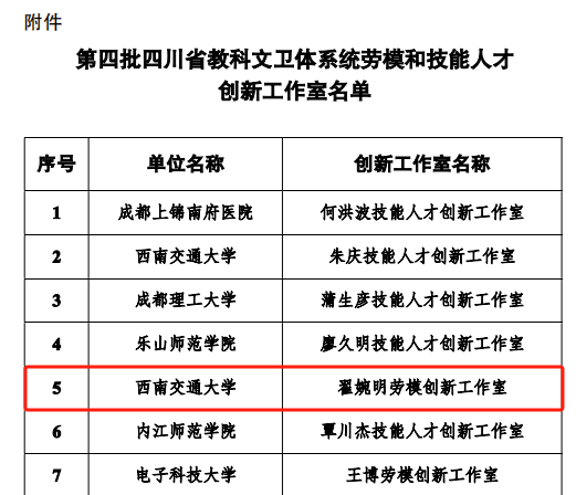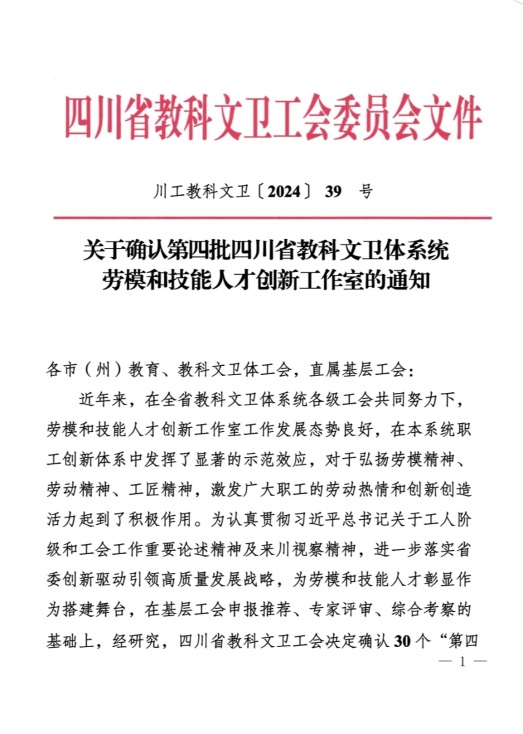 12月10日,四川省教科文卫工会下发《关于确认第四批四川省教科文卫体系统劳模和技能人才创新工作室的通知》,在基层工会申报推荐、专家评审、综合考察的基础上,决定确认30个“第四批四川省教科文卫体系统劳模和技能人才创新工作室”,爱爱啦