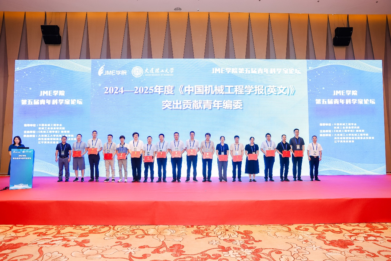 论坛开幕式上举行了《机械工程学报》《中国机械工程学报(英文)》(以下简称CJME)《增材制造前沿(英文)》三刊的突出贡献青年编委表彰仪式和《机械工程学报》编辑部第九届高影响力论文证书颁发仪式。实验室凌亮、李田、陈是扦、陶功权老师入选《机械工程学报》2024-2025年度突出贡献青年编委;朱涛、杨冰老师发表于CJME期刊的两篇论文,入选《机械工程学报》第九届高影响力论文,论文题目分别为《Parameters Calibration of the GlSSMO Failure Model for SUS301L-MT》和《Modified Model of Crack Tip Stress Field Considering Dislocation Slip Accumulation and Crack Tip Blunting》;作为CJME期刊副主编,王开云受邀为CJME突出贡献青年编委颁发证书。