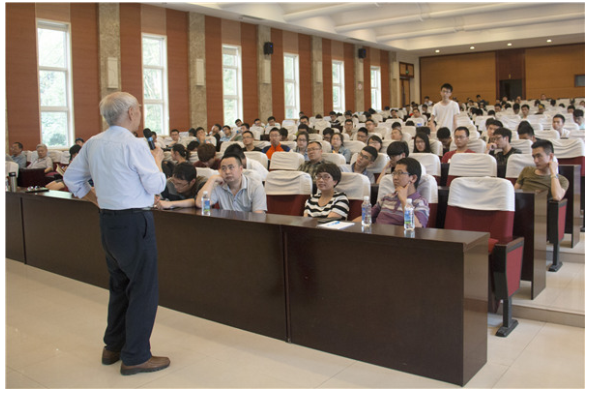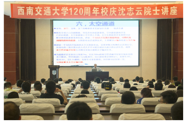 已有87岁高龄的沈志云,面对着座无虚席,甚至部分学生站在讲堂后面的情况,在现场人员的热烈掌声中,开始了本次讲座。 “校庆即将来临,我看到你们每个人脸上都带着笑脸,都很高兴,高兴的时候我们就想想高兴的事情,不管拿什么语言来说,都比最好的音乐要好听。”讲座伊始,沈志云院士便如是说道。