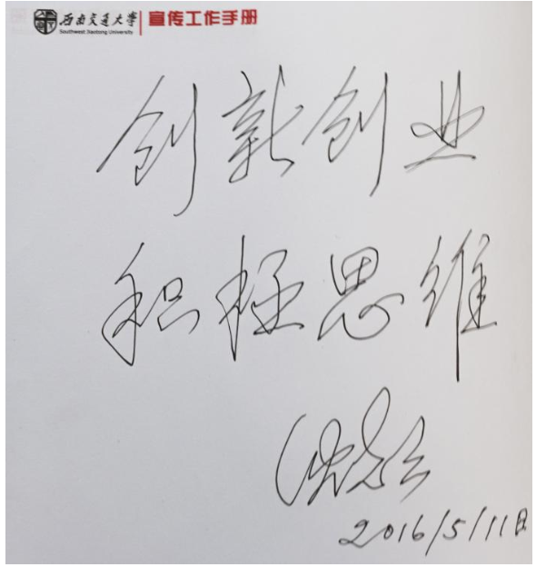 87岁高龄的老者到现在依然身体健康,思维鲜活,回想起在那时在唐山铁道学院的时光,他说,“我49年进校,现在已经67年了。读书的时候,哥哥给我的要求就是,门门得第一,所以我也努力上进,做到最好。别人都说我是个完美主义者,但我觉得什么事都做到完美是一种美德。”他坚信在状态上的积极,在思考上的活跃,是老年生活质量的重要保障。最后,他为全校师生留下八字箴言“创新创业,积极思维”。