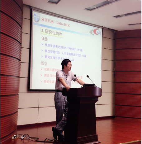 尤其在师资队伍建设方面,要发挥各方优势引进优秀人才,希望实验室年轻的教师能够做出成绩,进一步贯彻落实人才强校主战略。保证青年人材储备充足,高层次人才培养实现突破。研究生培养方面,要提高优质生源率, 2018年达到79%的优质生源率,鼓励学生出国交流,不仅可以提高科研能力,也可以开阔视野。对标2018年科技部评估,康主任提出实验室 “保良争优”目标,在科研项目纵横比、科研平台设备建设、纵向项目申报、发明专利等方面均提出明确要求。