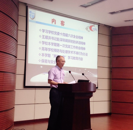 之后,实验室党委书记董大伟传达了校党委十四届六中全会、新学期第一次党政工作例会精神,介绍了王顺洪书记带队赴深圳调研反馈的相关情况。