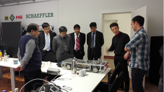 1月18日上午,代表团来到卡尔斯鲁厄理工学院。在KIT舍弗勒先进研究中心(SHARE at KIT),代表团与学校国际事务办公室亚洲和中东执行官Oliver Schmidt先生以及舍弗勒先进研究中心团队进行会谈交流。Oliver Schmidt先生从学校组织架构、学科布局、研究能力、国际化工作等方面对卡尔斯鲁厄理工学院的概况进行了介绍。卡尔斯鲁厄理工学院是德国顶尖理工科大学之一,也是在自然科学和工程技术等领域享有盛誉的世界顶尖研究型大学之一。其校友和教授中诞生过“电磁波的发现者”海因里希•赫兹,“液晶之父”奥托•雷曼,“合成氨之父”弗里茨•哈伯,“氢弹之父”爱德华•泰勒,“高分子化学之父”赫尔曼•施陶丁格,“汽车之父”卡尔•本茨等世界著名科学家、企业家和社会名人。因其在教学和科研方面的突出表现和卓越的创新精神,KIT于2006年被德国科研联合会(DFG)评为首批三所德国精英大学(Elite-Uni)之一,这不仅是德国高校的至高荣誉,还意味着更多的政府资金支持。同时,KIT是德国亥姆霍兹联合会成员,是一所国家级的大型研究中心,是德国九所卓越理工大学联盟(TU9)成员,欧洲航天局(CLUSTER)成员等。在大学整体排名方面,根据2016年QS世界大学排名显示,KIT是世界大学百强高校之一,排名全球第93,德国第4。在学科排名方面,根据2016年USNews世界大学排名学科排名显示,KIT的众多学科排名世界前列,其中工程学排名德国第1,化学排名德国第1,材料科学排名德国第2,地球科学排名德国第3,物理学排名德国第4。另外,KIT国际化工作也相当出色,根据2015年数据,国外博士生和研究人员占全校师生20%,分布在全球65个国家的合作伙伴超过1000家,与国外大学合作开展24个双学位计划,29个国际博士生计划,世界知识产权数量1800多件,欧盟项目资助额超过8000万欧元。Ralf Stopp博士介绍了KIT舍弗勒先进研究中心的设立目的、组织架构、科研能力和博士生培养情况,代表团对舍弗勒集团在著名大学设立研究机构或研发团队的合作模式展开了详细讨论,这种校企合作模式非常值得我校借鉴。会谈后代表团还参观了KIT移动系统研究中心的实验室和试验基地,该中心不仅重点研究技术发展,而且研究人、车辆与基础设施之间的相互作用,主要涉及产品创新、能源和存储系统、内燃机、驱动系统、底盘与车体、司机与车辆导航、基础设施、流量与移动行为等7个方面的科学研究,KIT移动系统研究中心在道路交通方面的系统研究方法对我校交通运输工程学科的内涵式发展有重要参考。