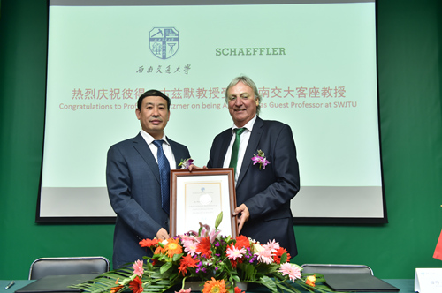 副校长张文桂教授和舍弗勒集团副首席执行官兼首席技术官彼得·古兹默教授在合作备忘录上签字,表明了双方将进一步加强在中国轨道交通领域的合作。