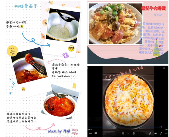 结语:在居家抗疫特殊时期,通过开展线上厨艺比赛来庆祝“三八节”,为全体女教职工提供了交流展示的平台。大家积极分享居家防疫妙招,交流健康饮食文化,展示家庭厨艺,既让厨艺有了传承和提升,也展示了大家对美好生活的热爱和战胜疫情的决心。