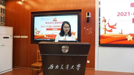 牵引动力国家重点实验室刘俊利同学、医学院罗力同学分别代表本期入党积极分子表态发言。刘俊利同学表示非常感谢分党校的培养教育,她代表牵引动力国家重点实验室的同学们严肃承诺:认真参加培训、不无故缺课、不迟到早退,用实际行动证明入党的决心,踏实做人、认真做事。