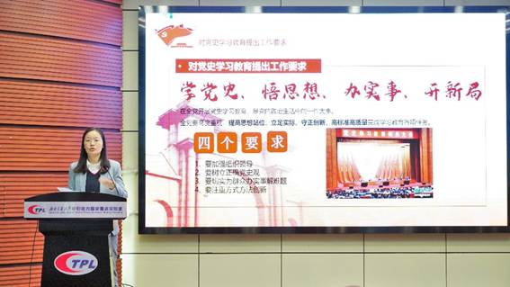 动员大会伊始,因庞烈鑫书记有其它工作任务,委托李莹副书记领学了习近平总书记在党史学习教育动员大会上的讲话精神。李书记全面深入地阐述了开展党史学习教育的重大意义,部署了党史学习教育的重点任务。传达了习近平总书记在党史学习教育动员大会上提出的“三个要求”:第一,在全党开展学习教育,是牢记初心使命、推进中华民族伟大复兴历史伟业的必然要求;第二,在全党开展党史学习教育,是坚定信仰信念、在新时代坚持和发展中国特色社会主义的必然要求;第三在全党开展党史学习教育,是推进自我革命、永葆党的生机活力的必然要求。并结合相关党史事件,对“三个要求”进行了生动阐述。在思想上进一步强化了全体党员学党史、悟思想、办实事、开新局的主动性和自觉性。