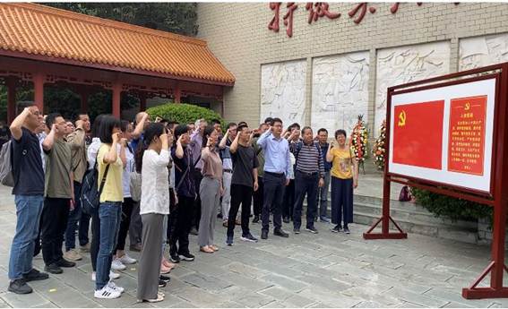 参观开始前,在英雄黄继光烈士雕像前,面向党旗,由党委书记庞烈鑫同志领誓,全体党员教职工庄严宣誓:“我志愿加入中国共产党,拥护党的纲领,遵守党的章程……为共产主义奋斗终身,随时准备为党和人民牺牲一切,永不叛党。”一声声誓言,饱含着牵引人愿追随革命先烈的脚步,为共产主义奋斗终身的坚定信念。