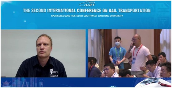 发起并主办、翟婉明院士担任主席的第二届国际轨道交通学术会议(ICRT2021),经过两天紧张有序的报告交流与学术研讨,完成各项日程,圆满落幕。受COVID-19疫情的影响,本次大会采用线上与线下相结合的方式举办,外国专家学者通过视频连线的方式与现场参会代表互动交流,同时大会特邀报告也同步向国内外进行直播。