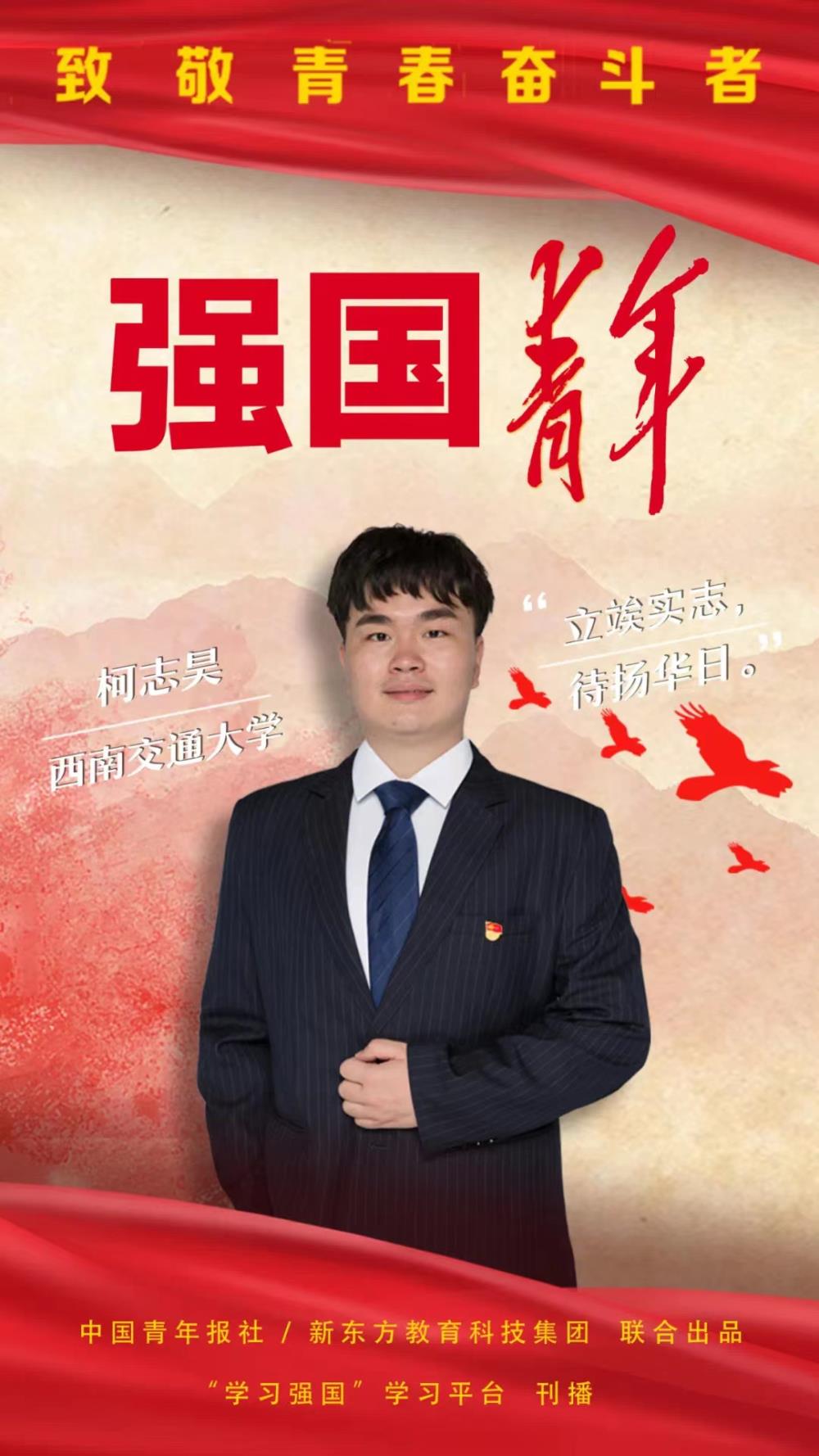 日前,由中国青年报策划推出的《强国青年》专题节目在“学习强国”、中国青年报等平台刊播,实验室2020级博士生柯志昊入选该节目,全国仅50名青年代表入选。