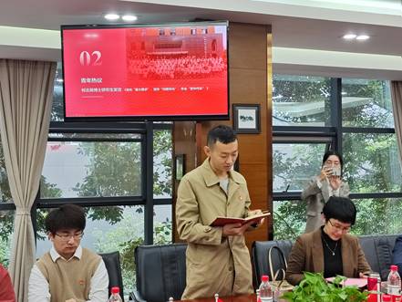 党委学生工作部副部长李国芳做总结发言,她指出,高质量开展主题党日活动是学生党建和学生工作紧密结合的重要途径之一,本次主题党日活动和实验室中心工作高度融合,能够起到良好的示范带头作用,希望研究生们能够深入学习领会党的二十大精神,坚定理想信念,将科研做在祖国大地,为国家原创性、引领性科技攻关贡献青春力量。