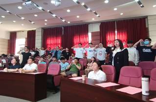 成立仪式还举行了宣誓活动,全体先锋队成员在漆小虎的带领下进行了庄严的宣誓。在宣誓声中各位先锋队成员进一步坚定了奉献的勇气与决心,要认真学习健康知识,落实责任、严守制度、加强协作,把驿站守好,把健康守住。