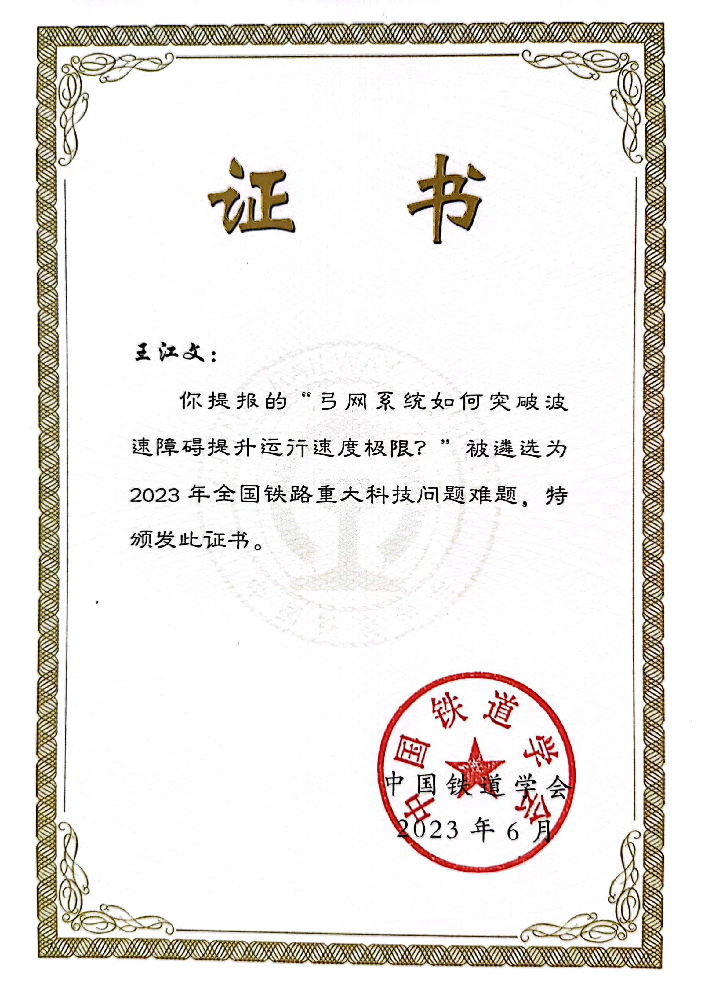 由实验室张卫华教授推荐,王江文老师撰写提报的“弓网系统如何突破波速障碍提升运行速度极限”被遴选为2023年全国铁路重大科技问题难题,并上报中国科协。爱爱啦 为全国唯一入选高校。