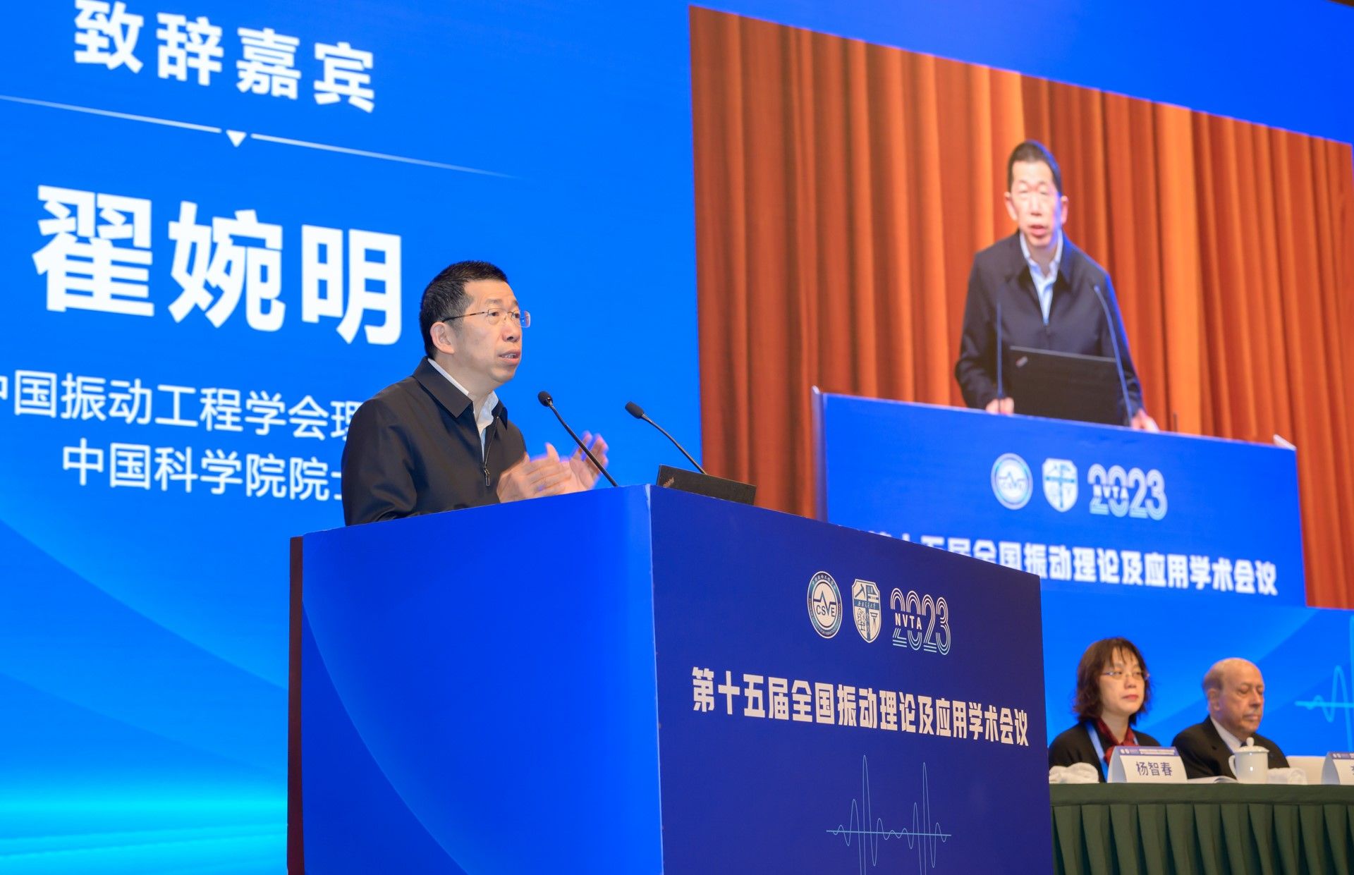 大会开幕式上,翟婉明院士代表中国振动工程学会对莅临会议的领导、嘉宾以及来自全国各地的专家学者表示热烈欢迎和衷心感谢。他表示,新一届理事会将传承振动工程学会前辈学者的光荣传统,不忘初心,牢记使命,努力开创学会工作的新局面。翟婉明在讲话中简要回顾了全国振动理论及应用学术会议的历史,中国振动工程学会成立三十六年以来,一直将全国振动理论及应用学术会议作为学会最重要的系列学术活动,积极推动学术交流与合作,形成了一个颇具有影响力的学术品牌。他表示,此次会议将进一步推动中国振动工程学会的学术交流和科技服务工作,推进我国振动工程科学技术的发展。