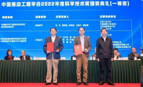 本次会议期间举行了中国振动工程学会2022年度科学技术奖、青年科技奖和首届国际学术贡献奖颁奖典礼,翟婉明院士为科学技术奖获奖项目颁奖,李杰院士为青年科技奖获奖者颁奖,胡海岩院士为Ahsan Kareem教授颁发国际学术贡献奖。