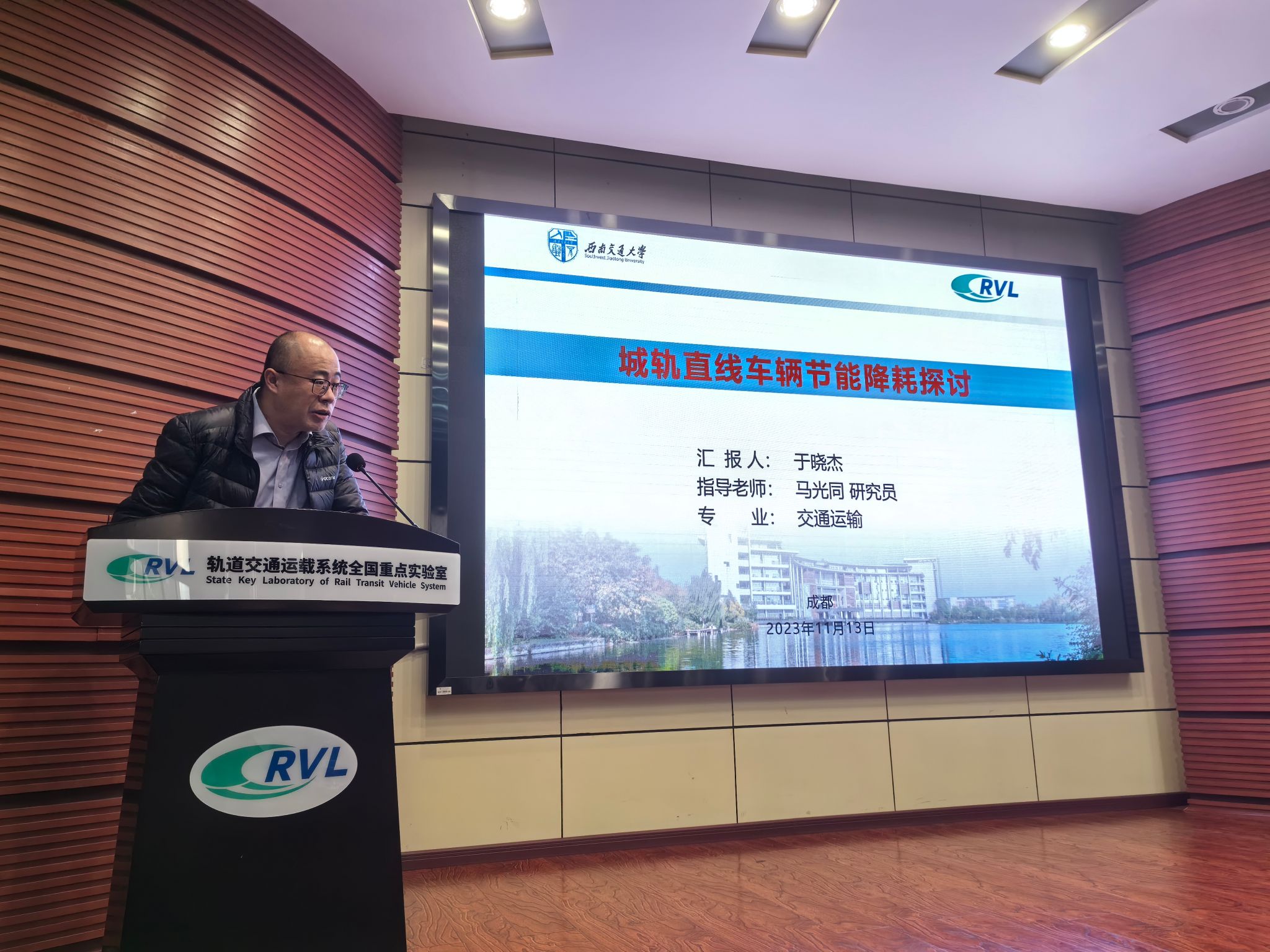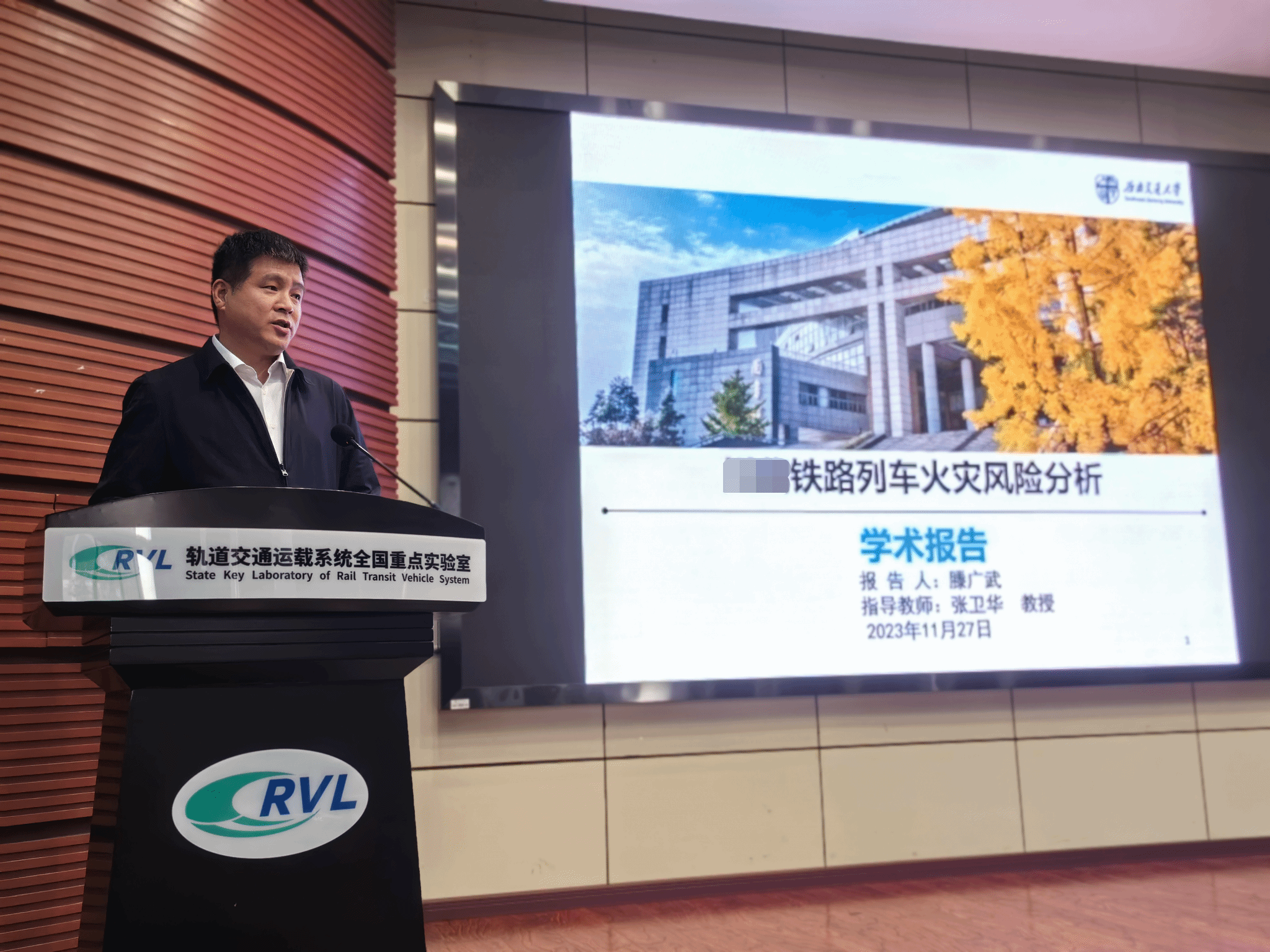 本次论坛邀请了实验室5位在读工程博士研究生做报告,分别是中铁二院陈志辉、中铁建工滕广武、中车株机陈哲、中车四方于晓杰、中车长客王爱彬。报告的题目分别为《山地轨道交通齿轨系统核心技术与装备研发及应用》、《极端复杂环境下的高速列车火灾风险分析》、《我国铁路重载牵引装备的技术实践与发展》、《城轨直线电机车辆节能降耗探讨》、《磁浮交通体系分类及发展》。5位工程博士研究生的导师翟婉明院士、张卫华教授、王开云研究员、马光同研究员、马卫华研究员分别对报告进行了点评,并对其后续工作的开展提出了建议。陈再刚、张继旺等老师也参加了论坛,广大师生就感兴趣的问题与报告人进行了交流。