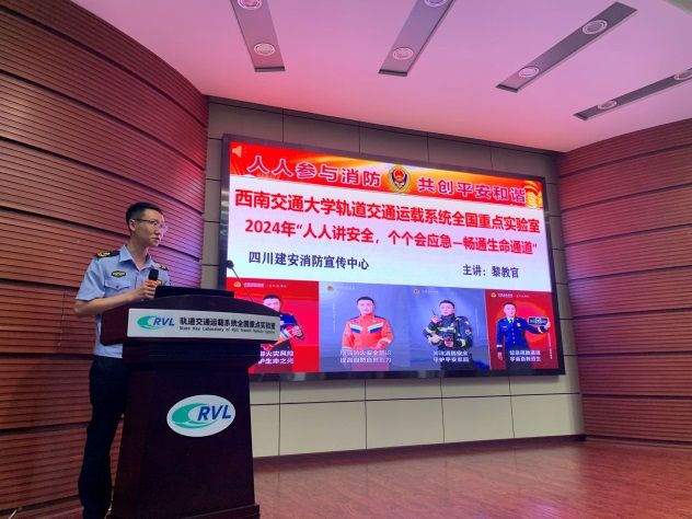 2024年6月6日下午3点,实验室在A1楼218会议室举办了2024年安全生产月“抓安全、促生产、惠民生”系列活动,活动主题是“人人讲安全、个个会应急——畅通生命通道”。实验室党委书记庞烈鑫、副书记王霞、副主任敬霖、安全秘书何健、装备运行与保障办公室全体成员、各试验台负责人和联系人、新入职青年教师、学生工作间代表,以及四川建安消防中心黎强教官、民生银行西南交大社区支行和山姆超市市场部相关负责人参加了本次活动。本次活动由敬霖副主任主持。
