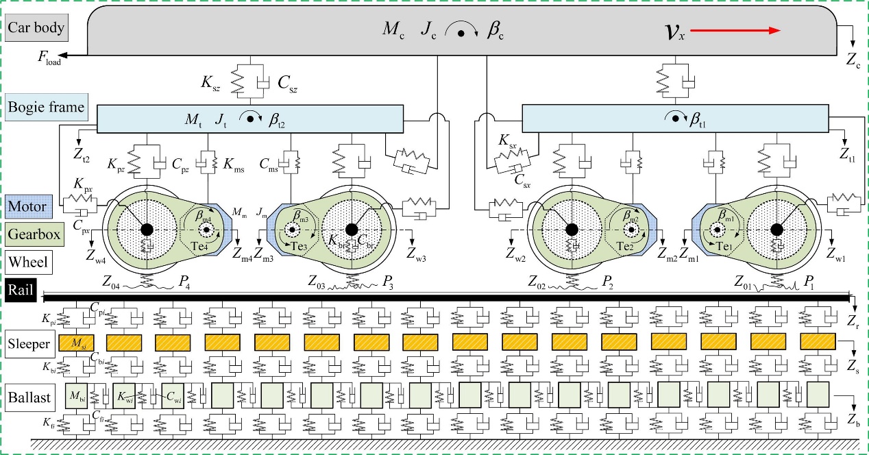 Fig. 2. Vehicle-track coupled dynamics model of an electric locomotive with gear transmissions.